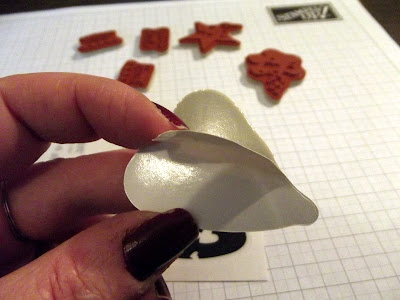 Prenez maintenant le tampon correspondant à votre étiquette, puis retirer la bande protectrice qui se trouve dessous ....